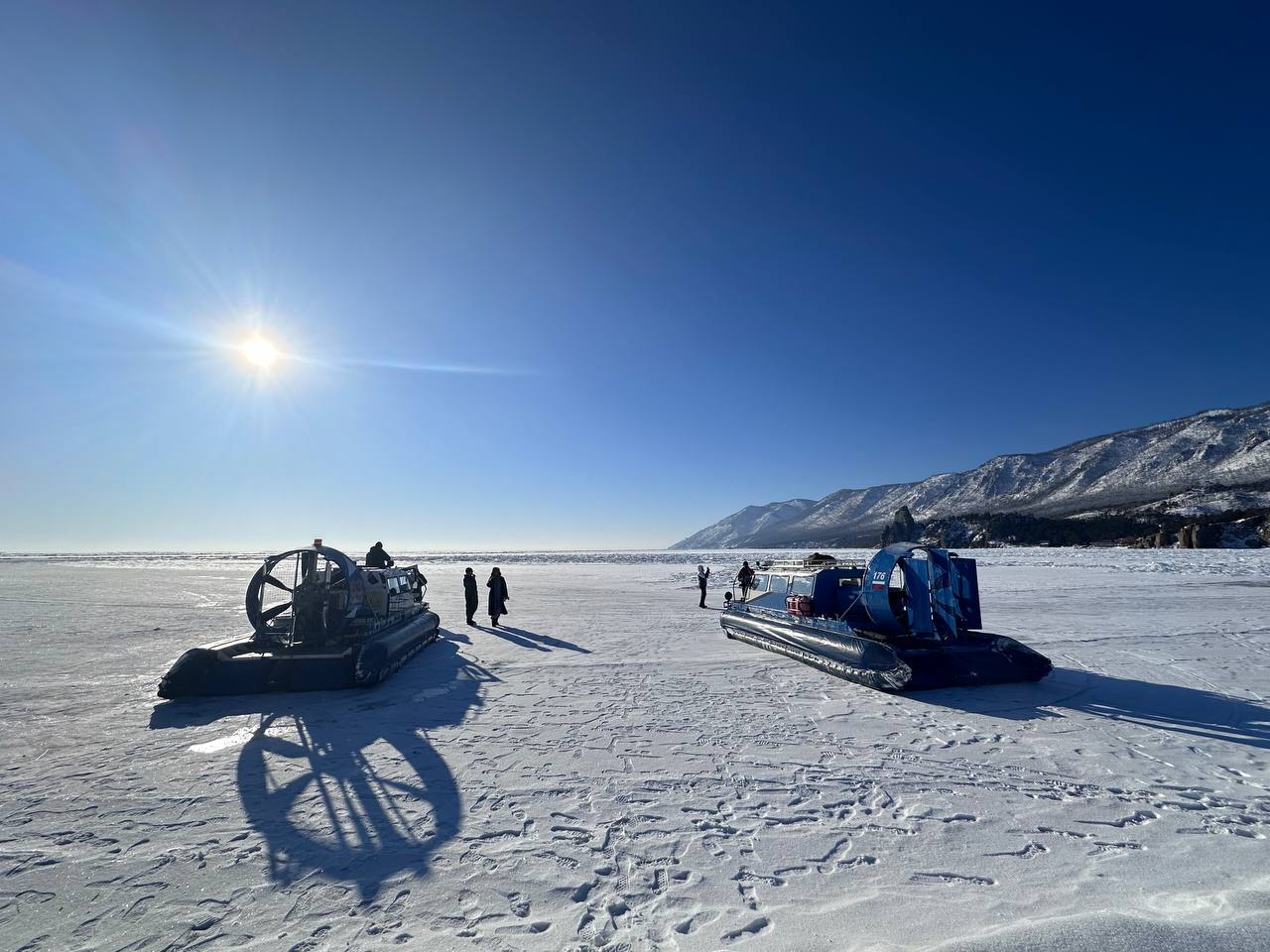 — поездить на хивусах — это такие воздушные катера на подушке, которые летают по льду Байкала. Да-да, летают!